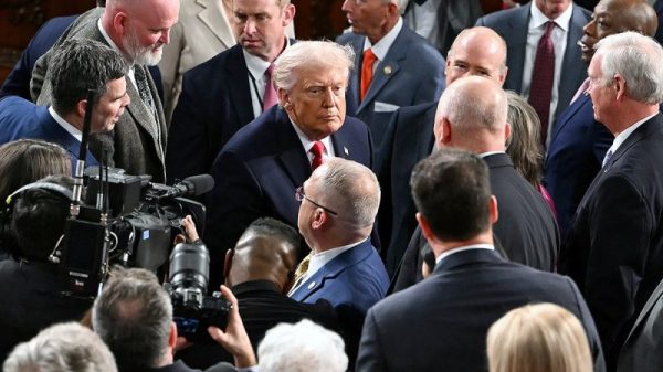 ‘Tonight, I will boycott Donald Trump’s State of the Union address,’ she said in the statement. ‘The American people deserve better than a low-down, scamming wannabe king who plans to stand at that podium and spew more lies; and I refuse to legitimize the weaponization of the federal government, blatant lies and corruption, and the destruction of our Constitutional principles and democratic norms.’