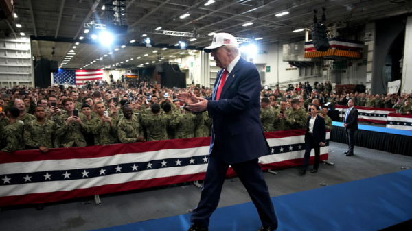 President Donald Trump spoke to U.S. service members aboard the nuclear-powered aircraft carrier George Washington in Yokosuka, Japan, Tuesday morning to promote his administration’s...